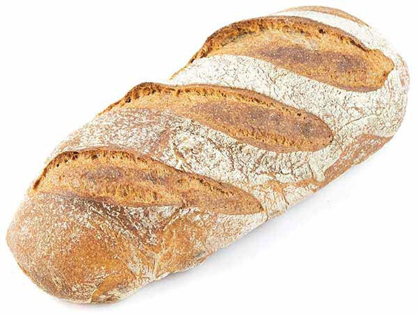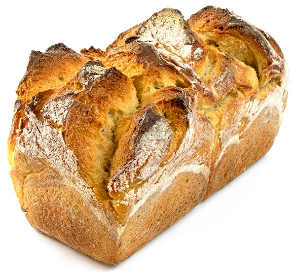 Seit 1953 aus dunklem Ruchmehl, versetzt mit wenig Roggenmehl traditionell hergestellt. Dadurch lange Feuchthaltung, feine Porung, knusprige Kruste. Mit hauseigenem Sauerteig angereichert. Brot für jede Mahlzeit. Auch zu Fondue ideal.